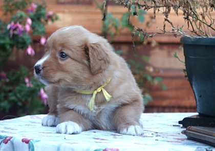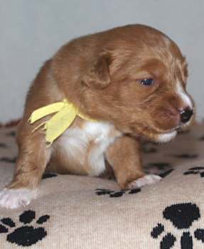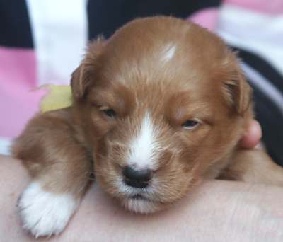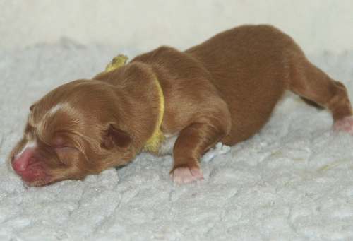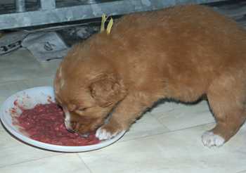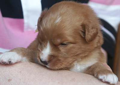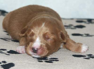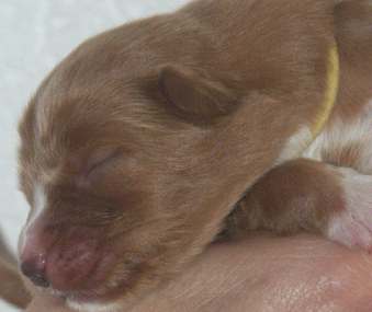 Bij dit teefje is duidelijk de ontwikkling van een zwarte neus te zien.