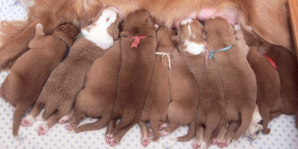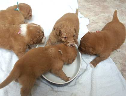 Er is nog geen foto van de pups na het eten. De camera blijft dan n.l. aan je handen plakken. |